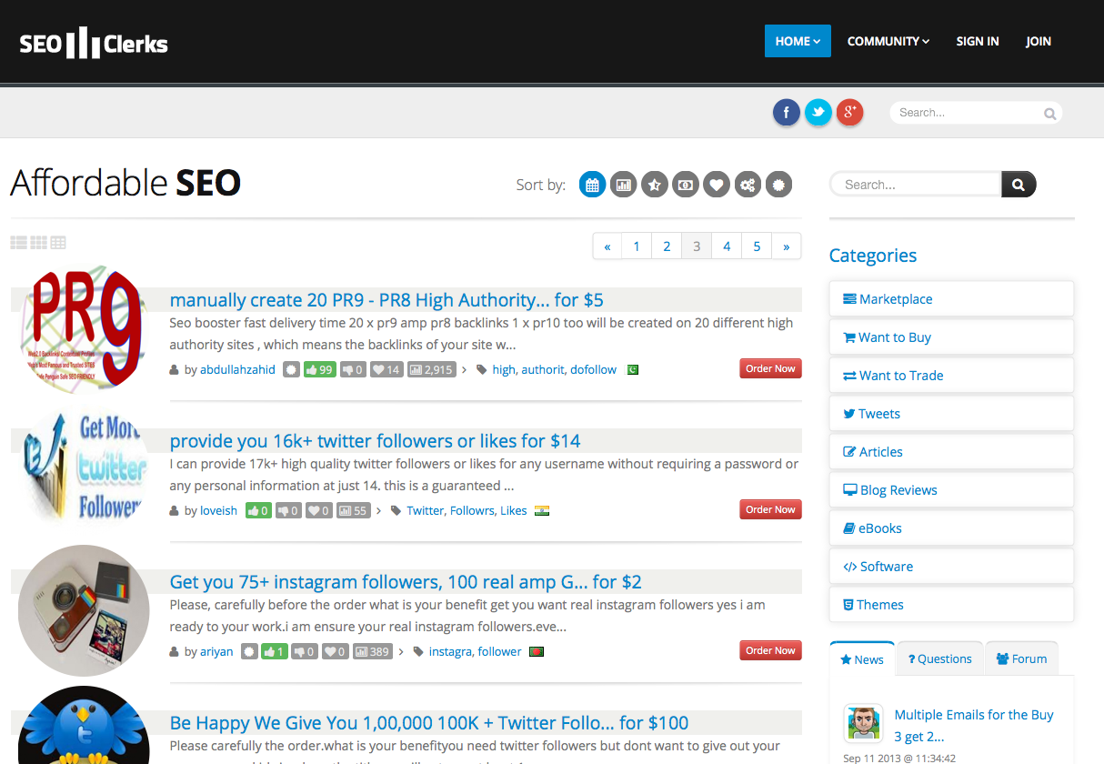 SEOClerks is a marketplace originally designed for SEO services. As part of our continuing effort to expand and innovate, we've changed. Since the inception of SEOClerks, we've expanded beyond SEO offering a Want to Buy and Want to Trade section where users can ask for anything. Our platform is built by community suggestions that our users want and need.