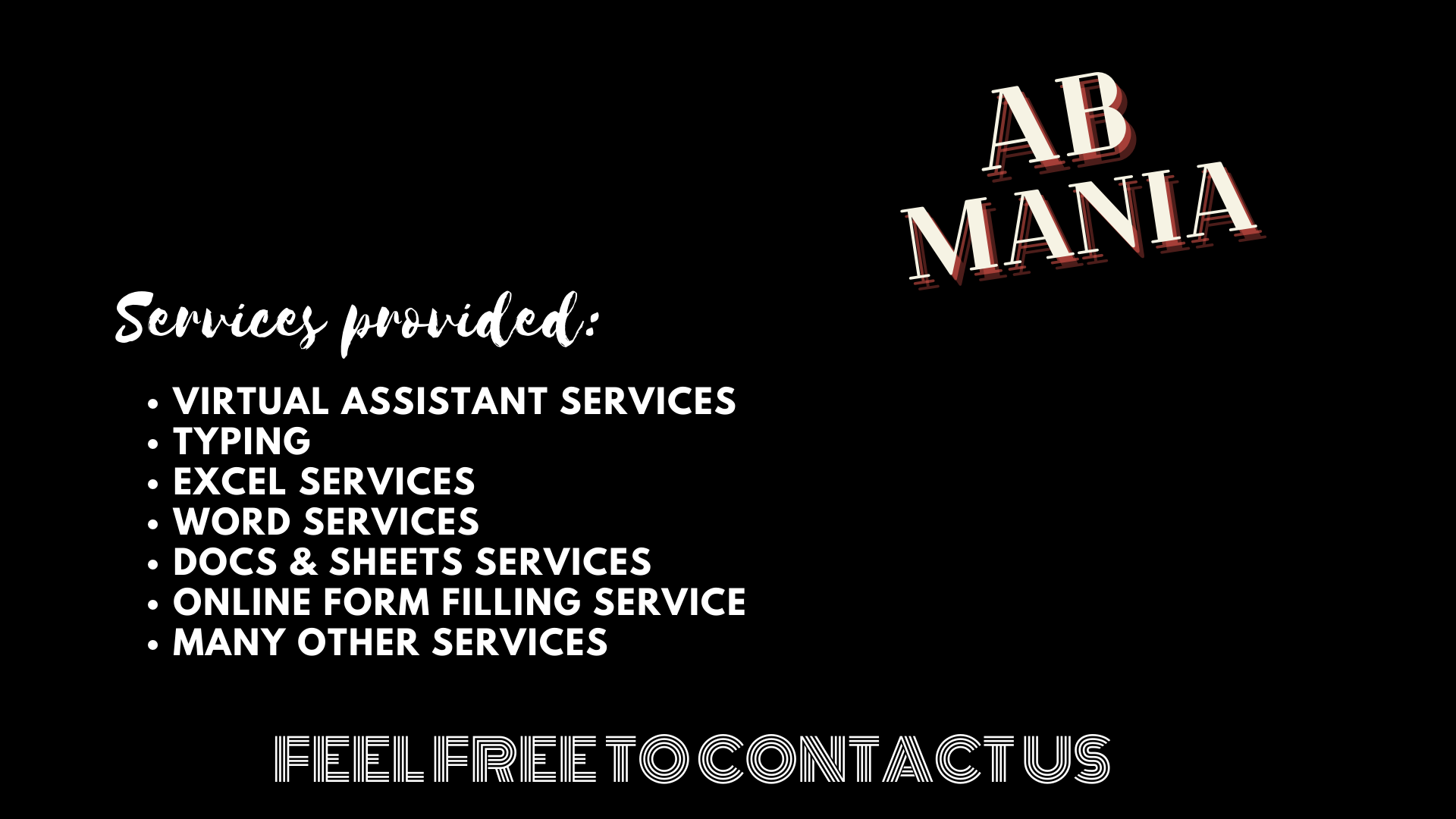 I also provide Word related services. I also provide Data entry in Google sheets and typing in Google docs.