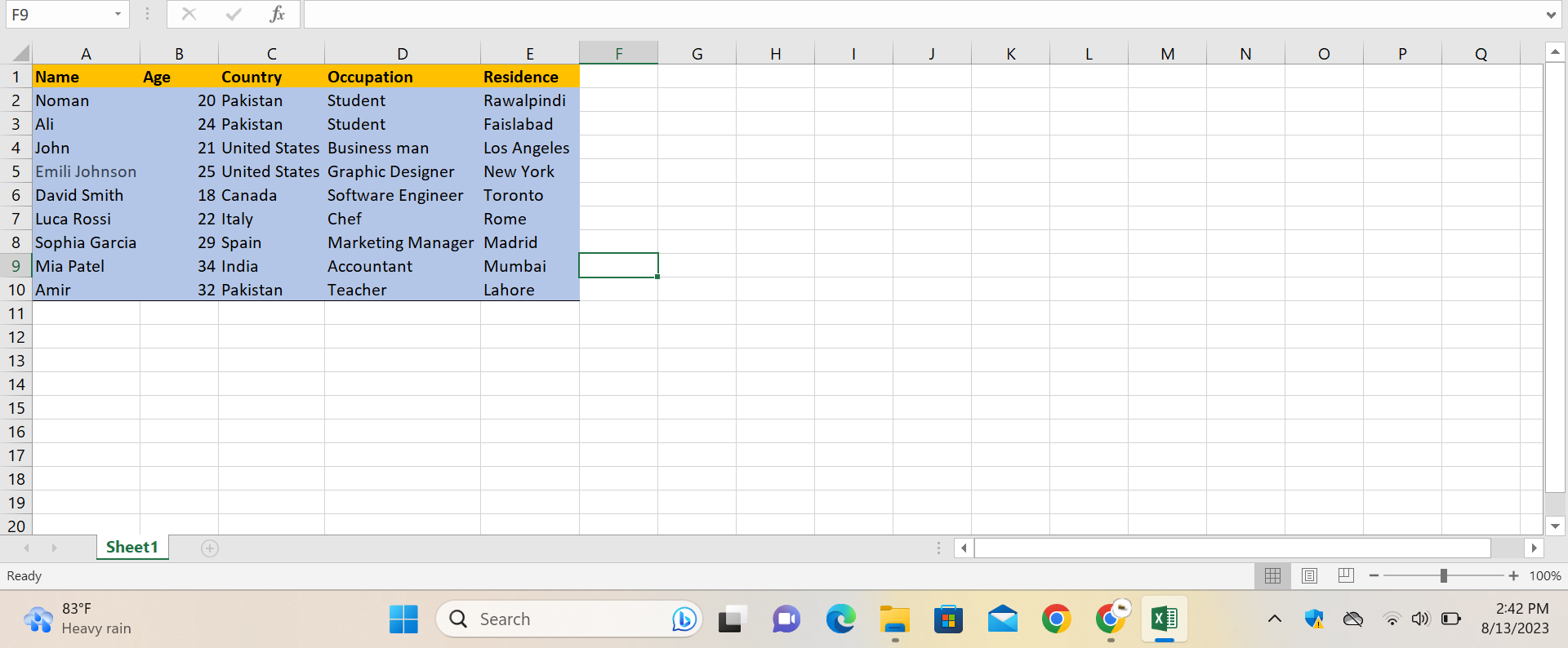 • Data Entry in Excel