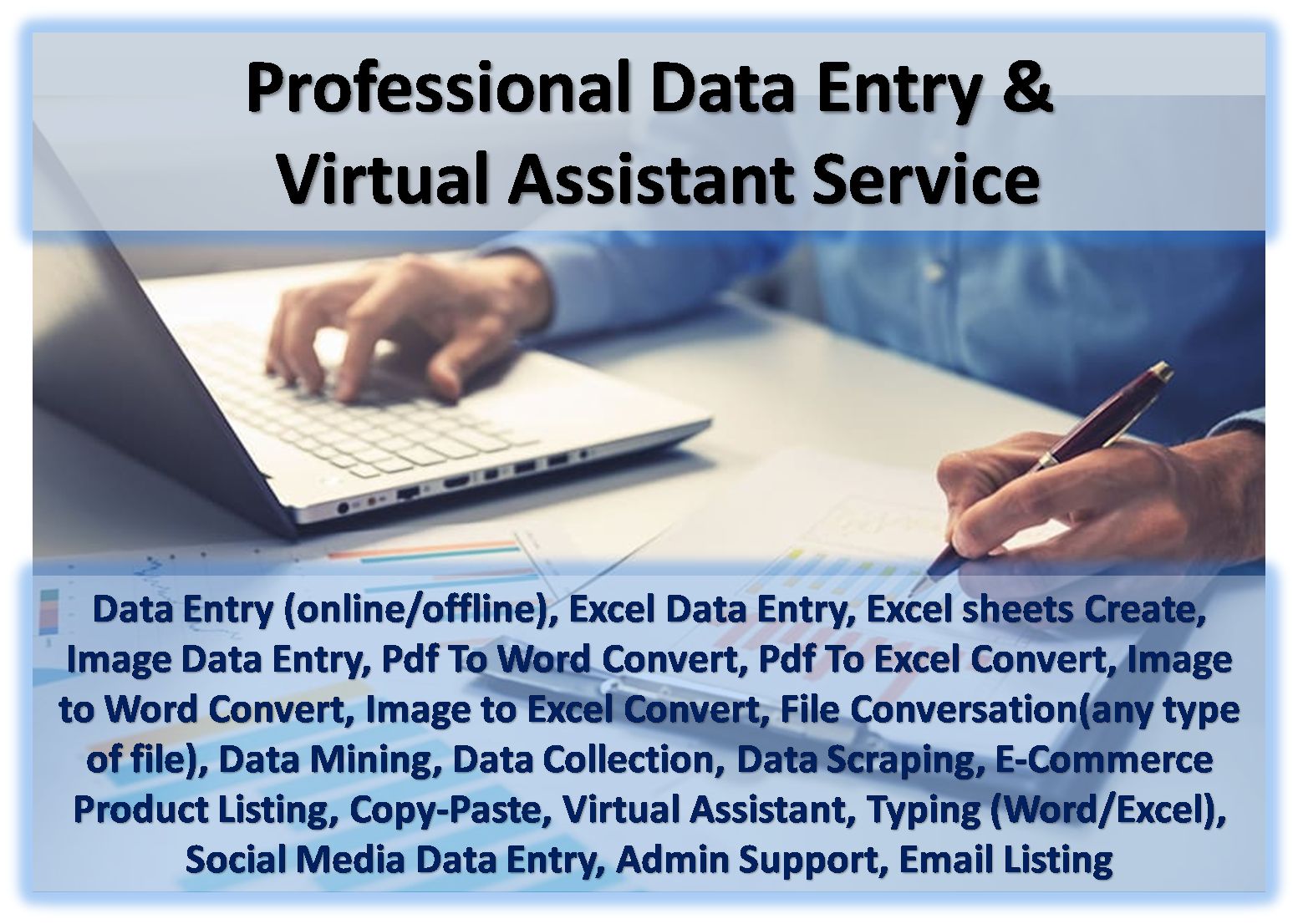 Professional Virtual Assistant & Data Entry, Typing, Copy and Paste works offered