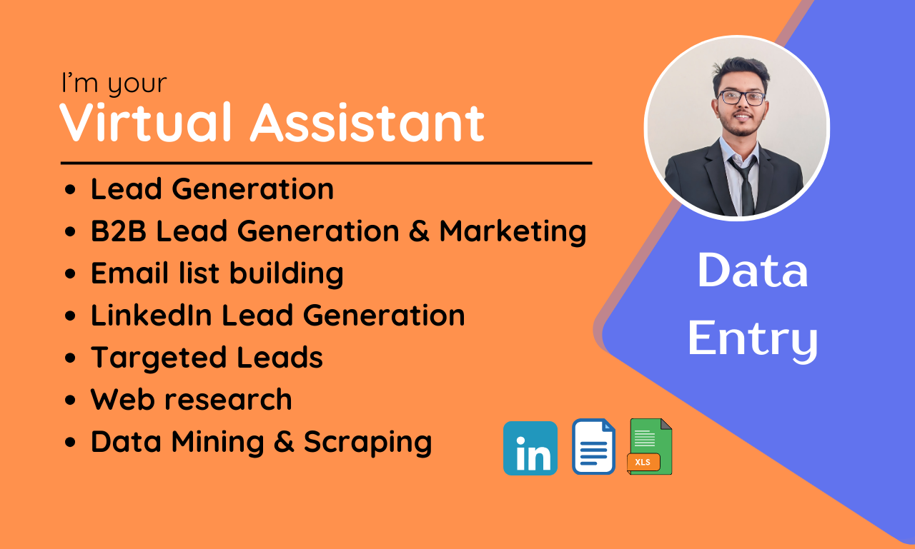 I will be virtual assistant, do fast accurate Data Entry & Lead Generation