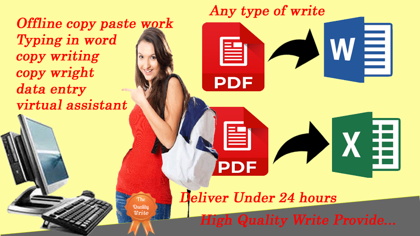 Copy writing and writing English pages on word or converting PDF to Word or Excel data entry for quality work and happy clients.
