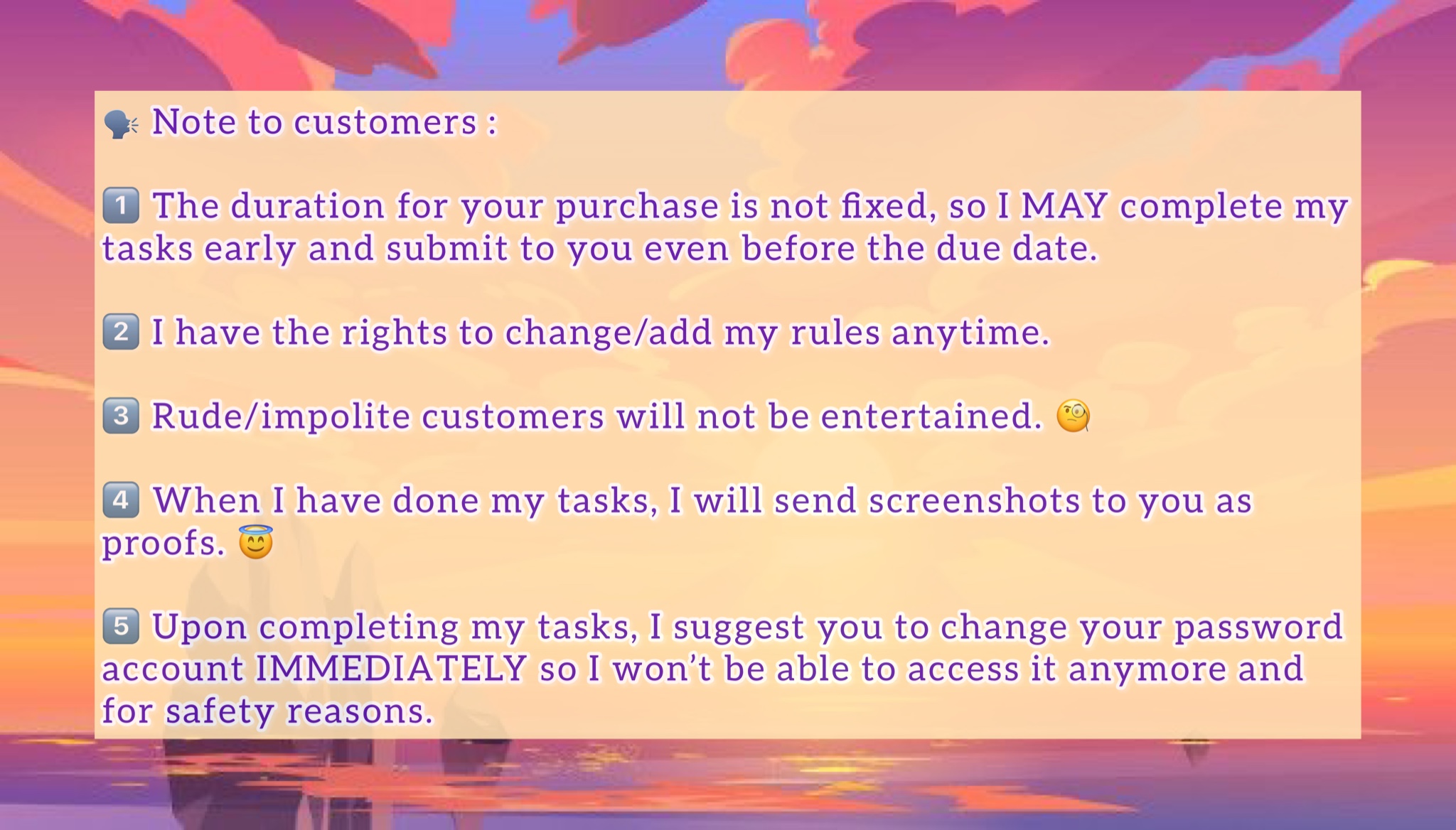 Please visit my other gigs for other types of purchases. Thank you !