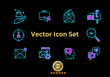 • A unified set of icons created in your desired style (flat, outline, vector, etc.)