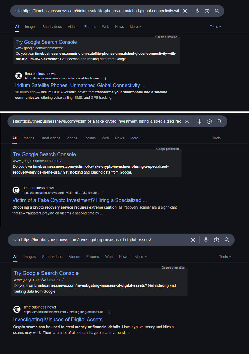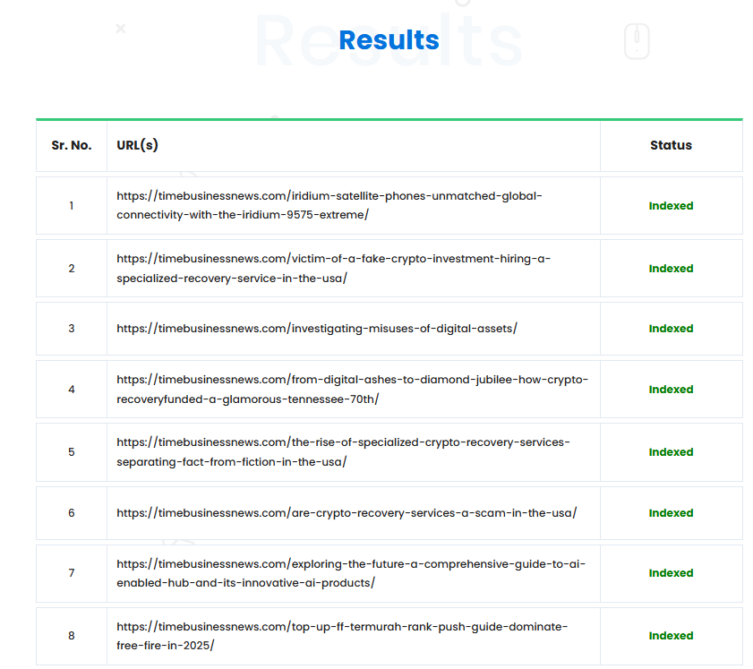 Google Indexing Results