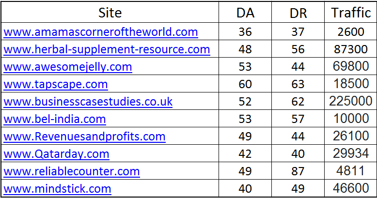 DA 30+, DR30+, Traffic 2k+