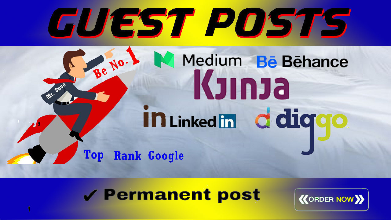 I will write and publish 5 guest posts on high quality sites da 90In the world of competition, everyone wants to be on the subject of peak to profit more traffic and more revenue. By keeping such glowing of important points, I deem to assuage people, as I am providing "High Quality Backlinks" from "High Quality Guest Post Sites" having High DA All links will be ""Do Follow "".