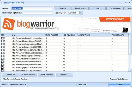 Introducing Blog warrior, Brought To u By Warrior Tool .This software Helps u To Identifies Wordpress Blogs With the 'no follow' tag in the comment field in any niche you choose, saves you time and effort from searching for blogs manually to Leave comments on and building backlinks .