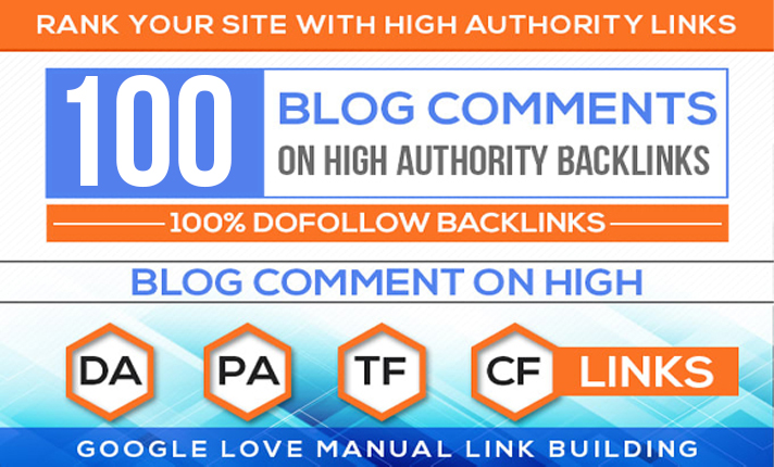 I make 100 DO FOLLOW BLOG COMMENTS HIGH DA PA TF CF HIGH QUALITY BACKLINKS