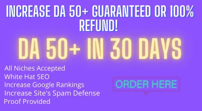 The higher your site Domain Authority the more powerful your site is, meaning much better rankings by Google.I will boost your site to over 50 DA in less than 30 days, guaranteed or your money back!