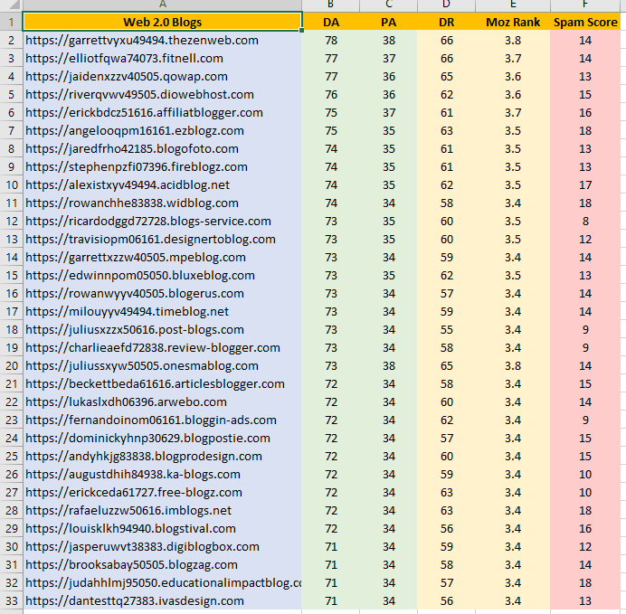- 30 backlinks from DA 70+ Web 2.0 Blogs.