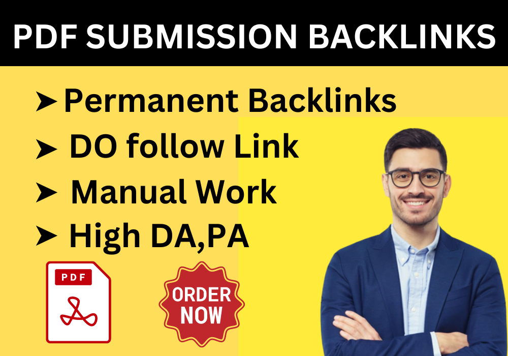 I will manually create and submit high-quality PDF documents with optimized keywords and clickable links to your website, helping to improve your visibility and authority in the eyes of search engines like Google.