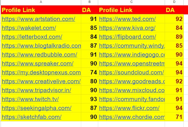 I will build 600 profile backlinks with high da.