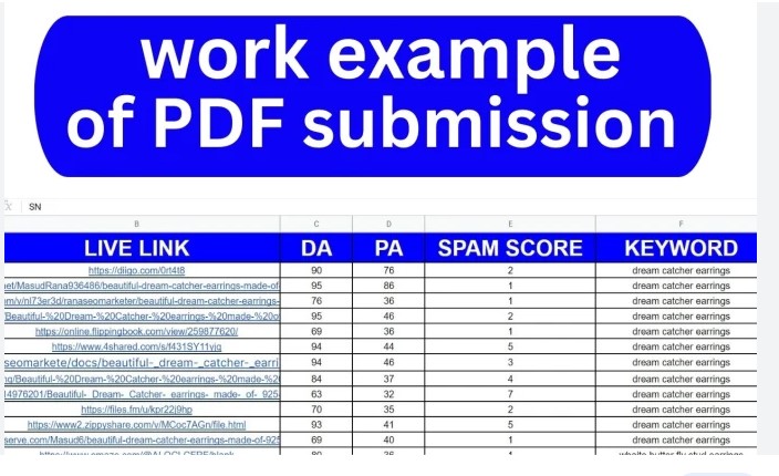 My submission process covers a range of popular sharing websites, including SlideShare, Issuu, Google Drive, Edocr, Box, Zoho, and many more. I execute these submissions manually to maximize their impact. Please note that some of these platforms offer public URLs for viewing the PDF file, while others may require log in credentials to access the document.