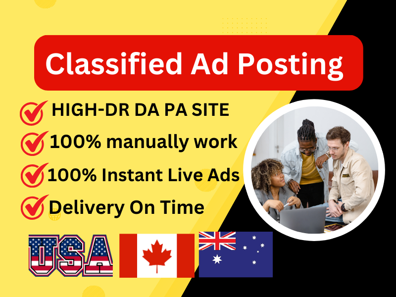 Classified ad posting is one of the cheapest yet most effective ways to attract targeted traffic to your business or service. Classified ads can undoubtedly help your company expand by increasing traffic, backlinks, and sales. I am here to place your advertising on top-ranked and classified sites in the United States, the the the United Kingdom, Canada, and Australia. By hiring me, you may post and promote your BUSINESS on these sites in a very organic and manual manner. I can assist you in reaching out to genuine clients anywhere in the world by publishing classified advertising.