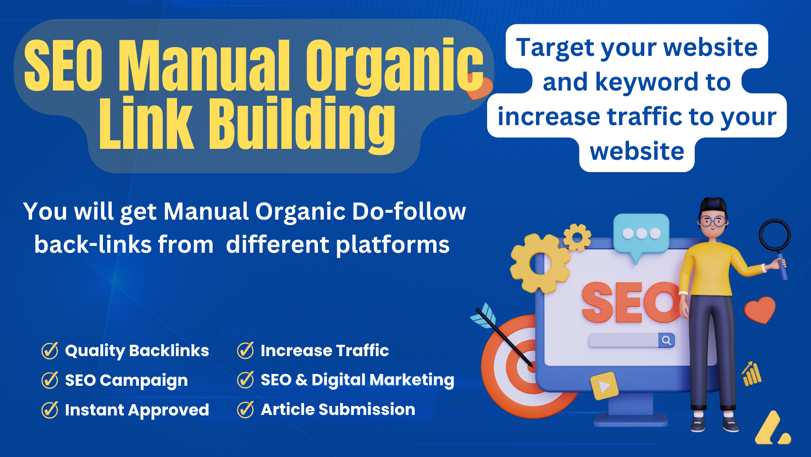 You will get 30 manual Do-follow back-links from different platforms , which will target your website
