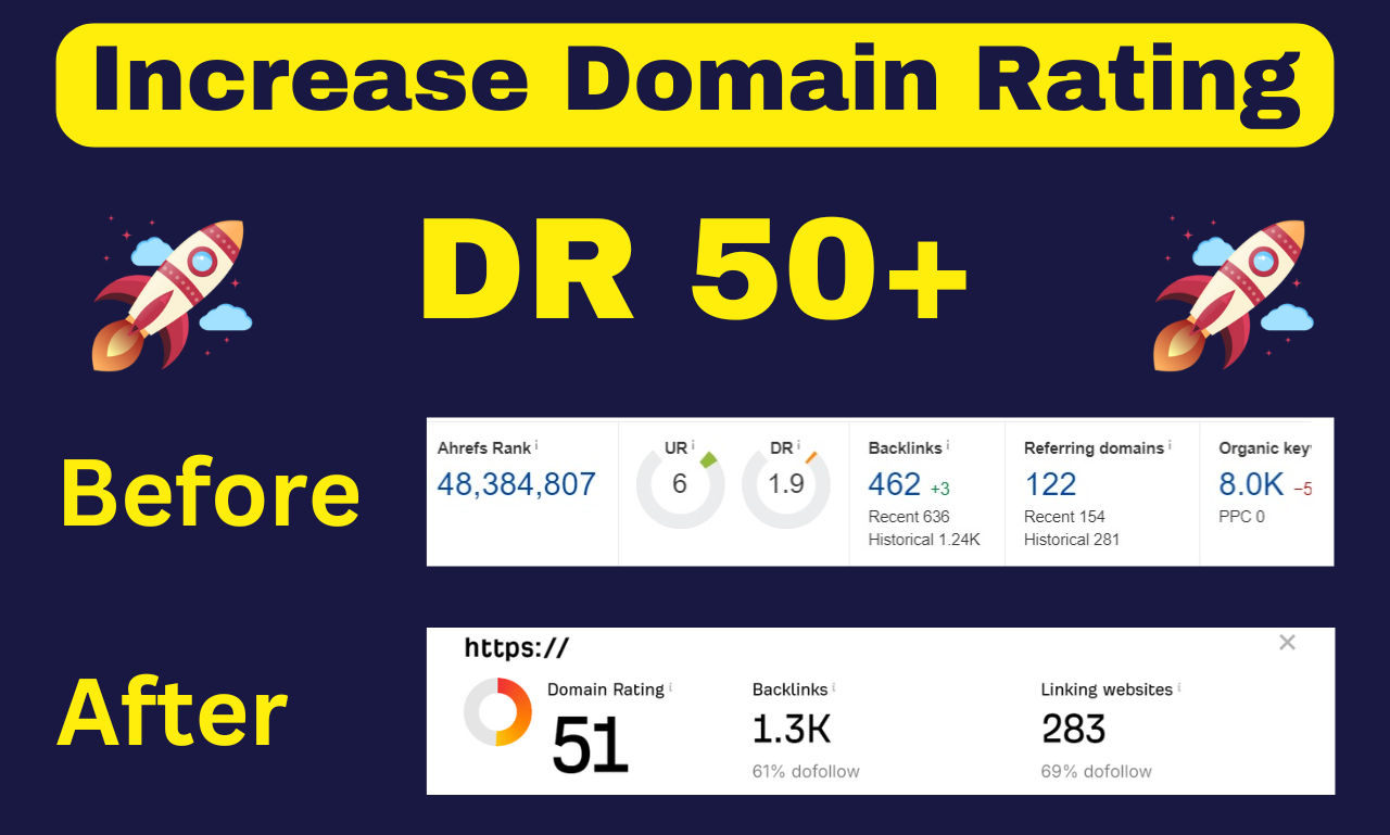 Increase Your Website's Ahrefs Domain Rating Dr to 50+ with Our Expert Services