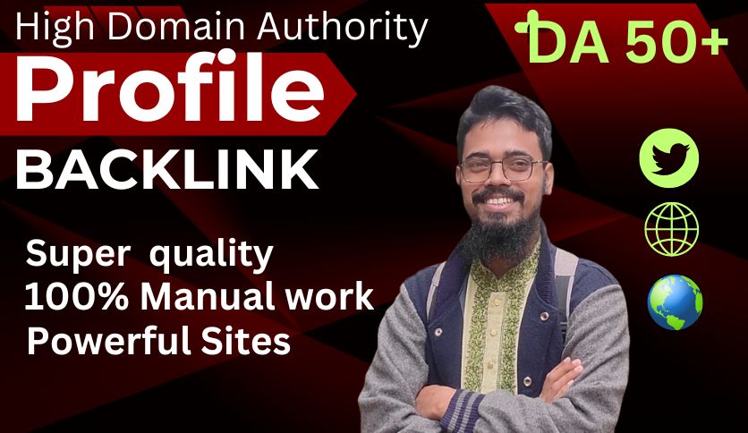 Get Ranked with a Manually Created Super Quality Profile BacklinkDo you want powerful and safe Profile creation backlinks? I am here to provide the perfect service for you. I have many influential sites with high DA and PA. Moreover, all backlinks will be created manually following the white hat method. I will build high-quality backlinks on Ted, Behance, Adobe, etc.