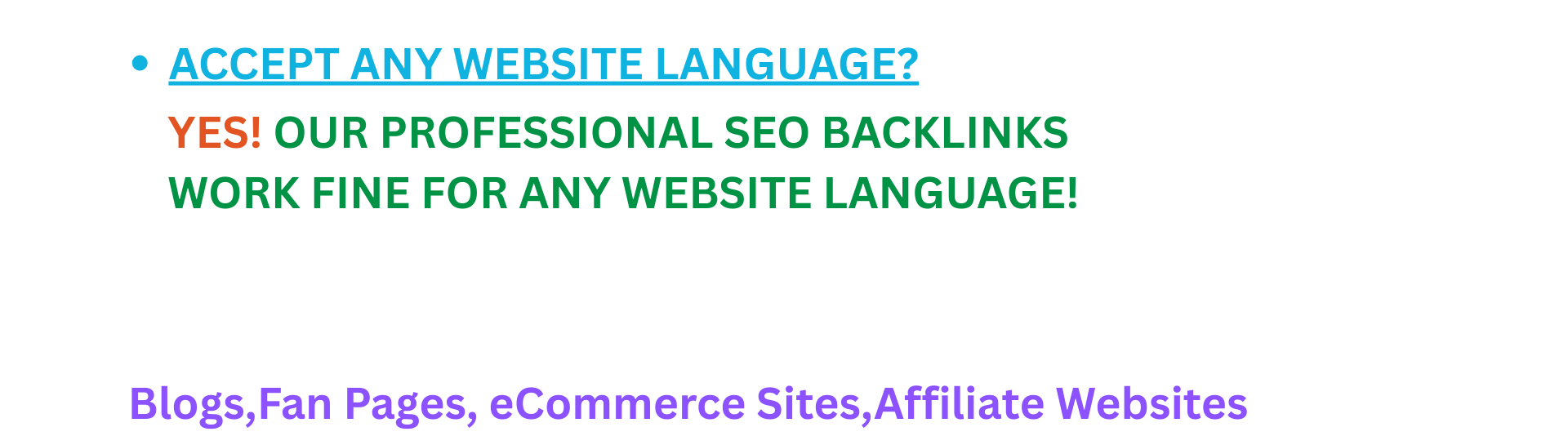 3. Q. Can you work on the non-English site? What about articles? Ans: Yes, we can; however, we use English-related articles with your exact keywords as you type in your language. It ranks well, so don't worry. ^^
