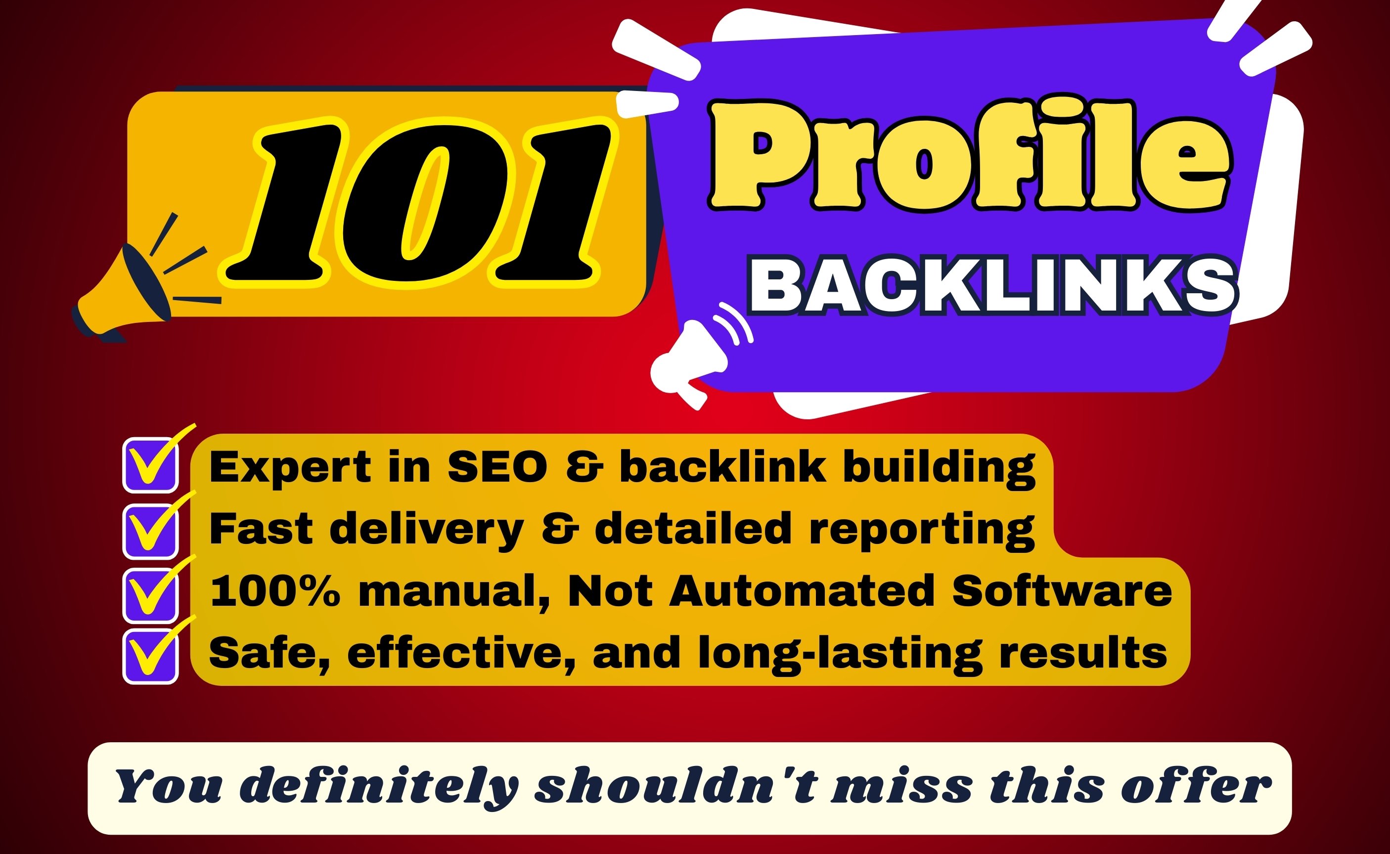 Struggling to boost your website’s authority and rank higher on Google? Let me handle that for you. I will create manually crafted profile backlinks on high-authority domains to strengthen your SEO profile creation and help your site earn trust in the eyes of search engines. These aren’t just random links – they are strategically built for long-term results using white-hat SEO techniques that Google loves.