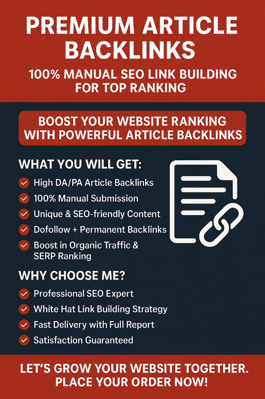 Boost Your Website Rankings with Powerful Article Backlinks! Are you looking for High-Quality Dofollow Backlinks That Actually Improve your Google Rankings? You're in the right place! I will publish SEO-optimized Articles with