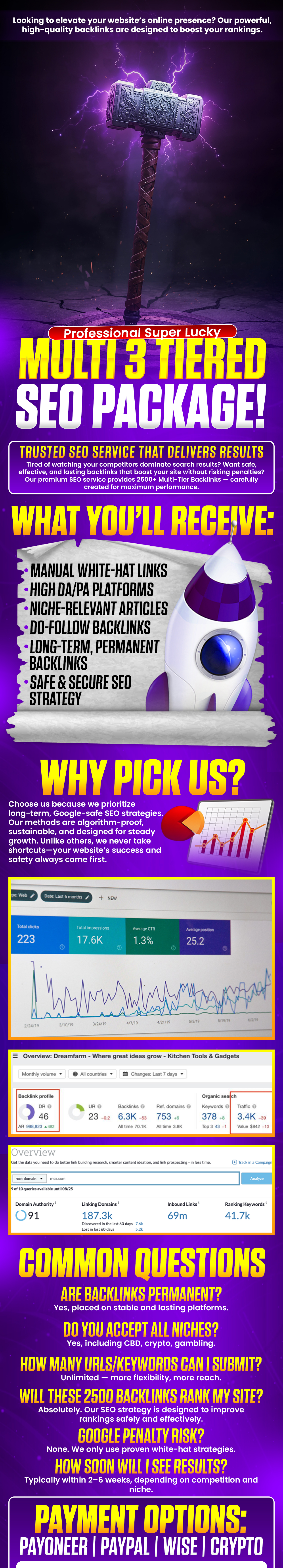 SUPER LUCKY Multi 3 Tiered Link Pyramid SEO Professional Package for $240