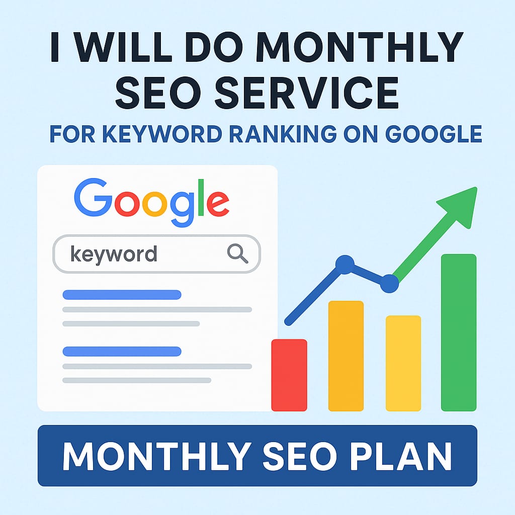 With my monthly SEO service, I’ll help your site rank higher for your target keywords — safely, effectively, and consistently.I offer a complete monthly SEO plan designed to improve your keyword ranking, increase traffic, and strengthen your online presence.