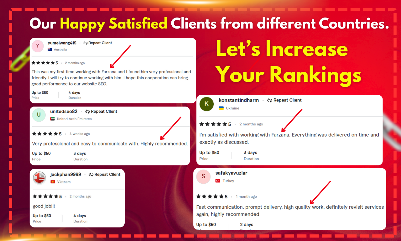 We are offering very high authority and powerful backlinks, which will increase your website's authority and rankings. We offer white hat service, No Black-hat methods, No Spam Links. These links will never harm your website and will benefit your domain.