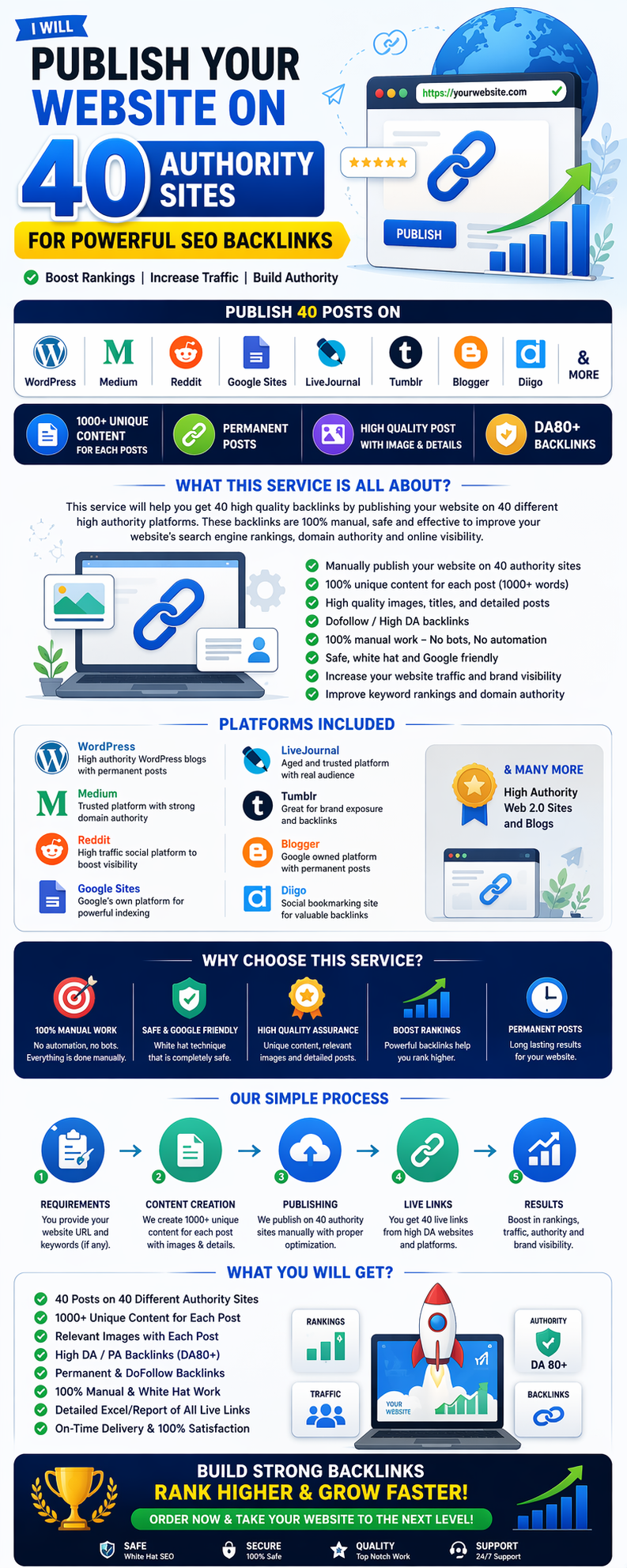 Boost your website’s visibility, authority, and search engine ranking with my professional SEO service designed for long-term success. I specialize in creating high-quality, manually crafted posts on trusted, high-authority platforms to strengthen your backlink profile and improve your online presence.