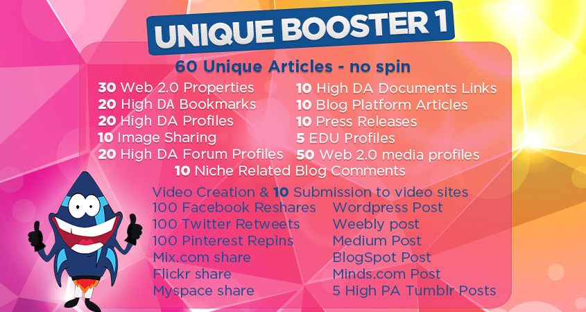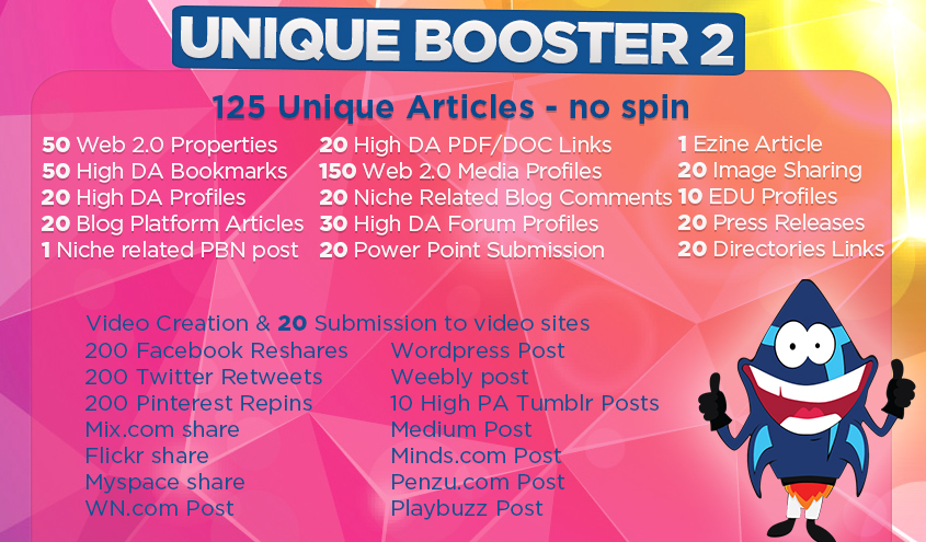 Unique Booster is a Linkbuilding package which had an amazing success and demand among our customers. We did a great job and upgraded it, now it has become even better! All changes were made especially for our clients!