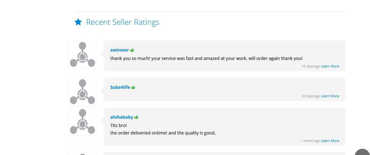 Some Recent Seller Ratings