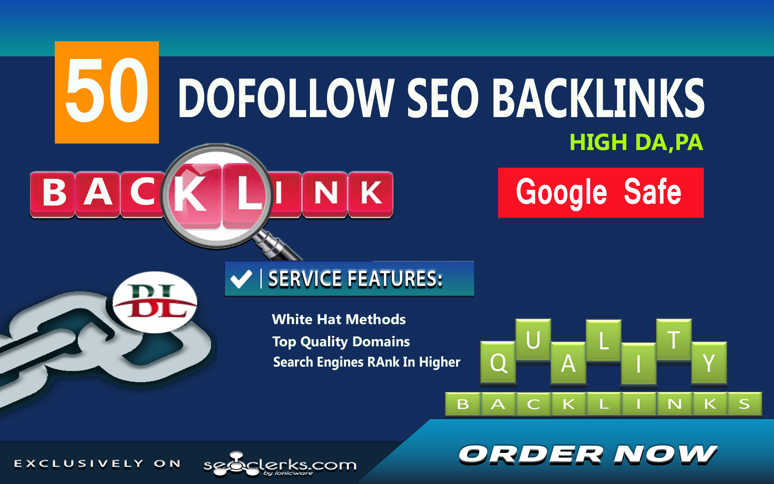Here i will be able to Provide 50 DO-FOLLOW PR High Da-Pa 50 to 95 Highly Authorized Google Dominating BACK-LINKS, most links are very High Domain Authority (DA & PA) Links & Anchor Text (Very Important) Collection to spice up Your 1st Ranking...