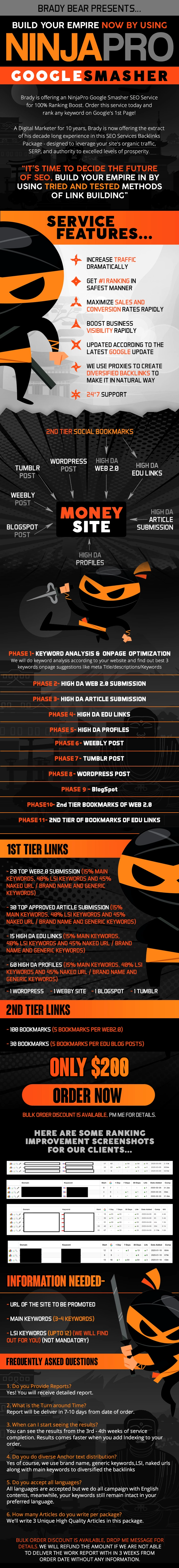 Brady is offering an NinjaPro Google Smasher SEO Service for 100% Ranking Boost.
