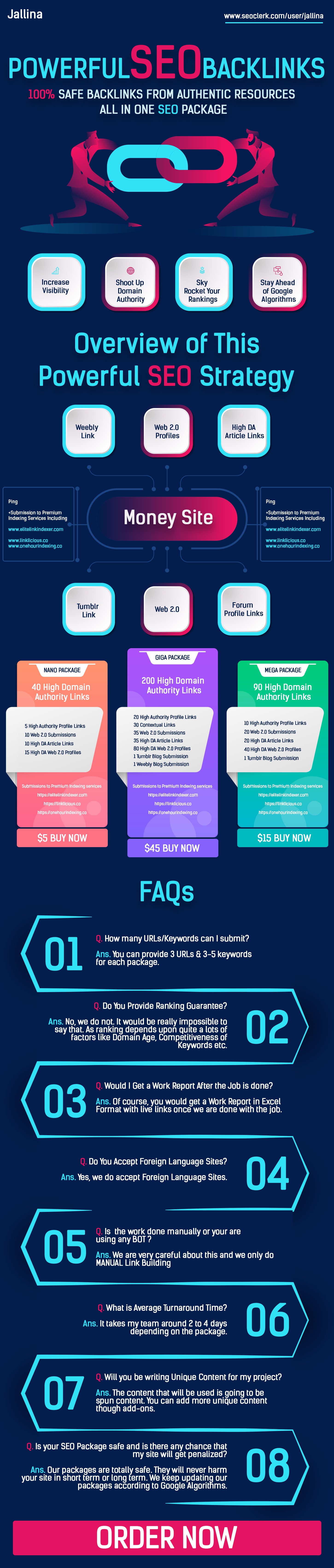 In higher packages you will get Approved Links from Tumblr and Weebly