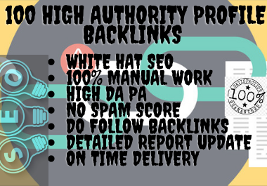 I will create profile backlinks manually in high DA PA websites. 100% safe and trusted.