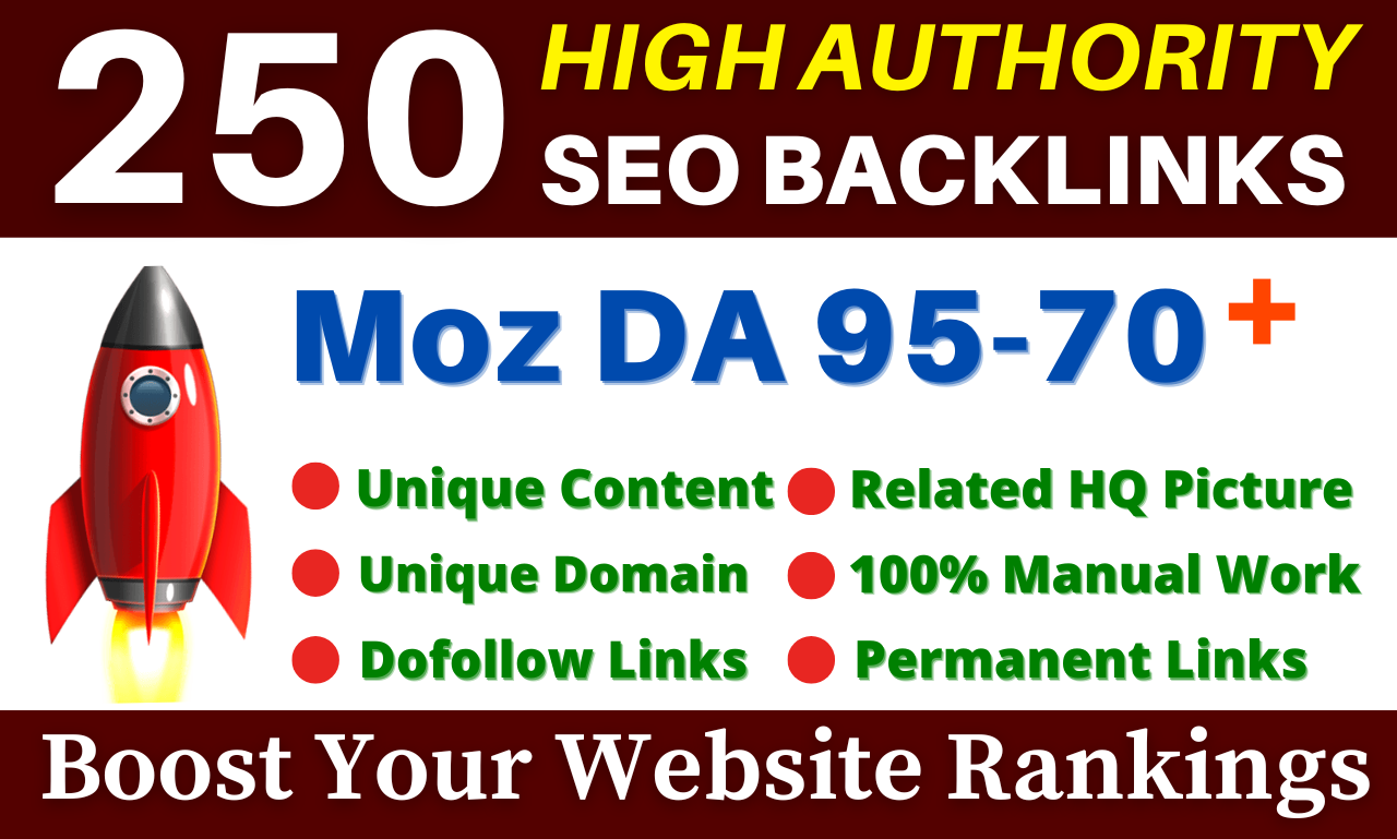 I will 250+ Moz DA 90+ High Authority SEO Dofollow Backlinks Web 2.0, Guest Posts, Blog Creation Etc