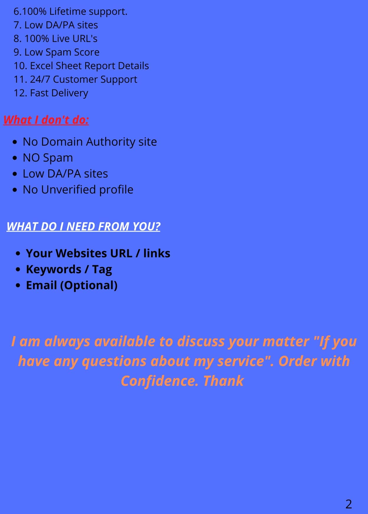 WHAT DO I NEED FROM YOU?