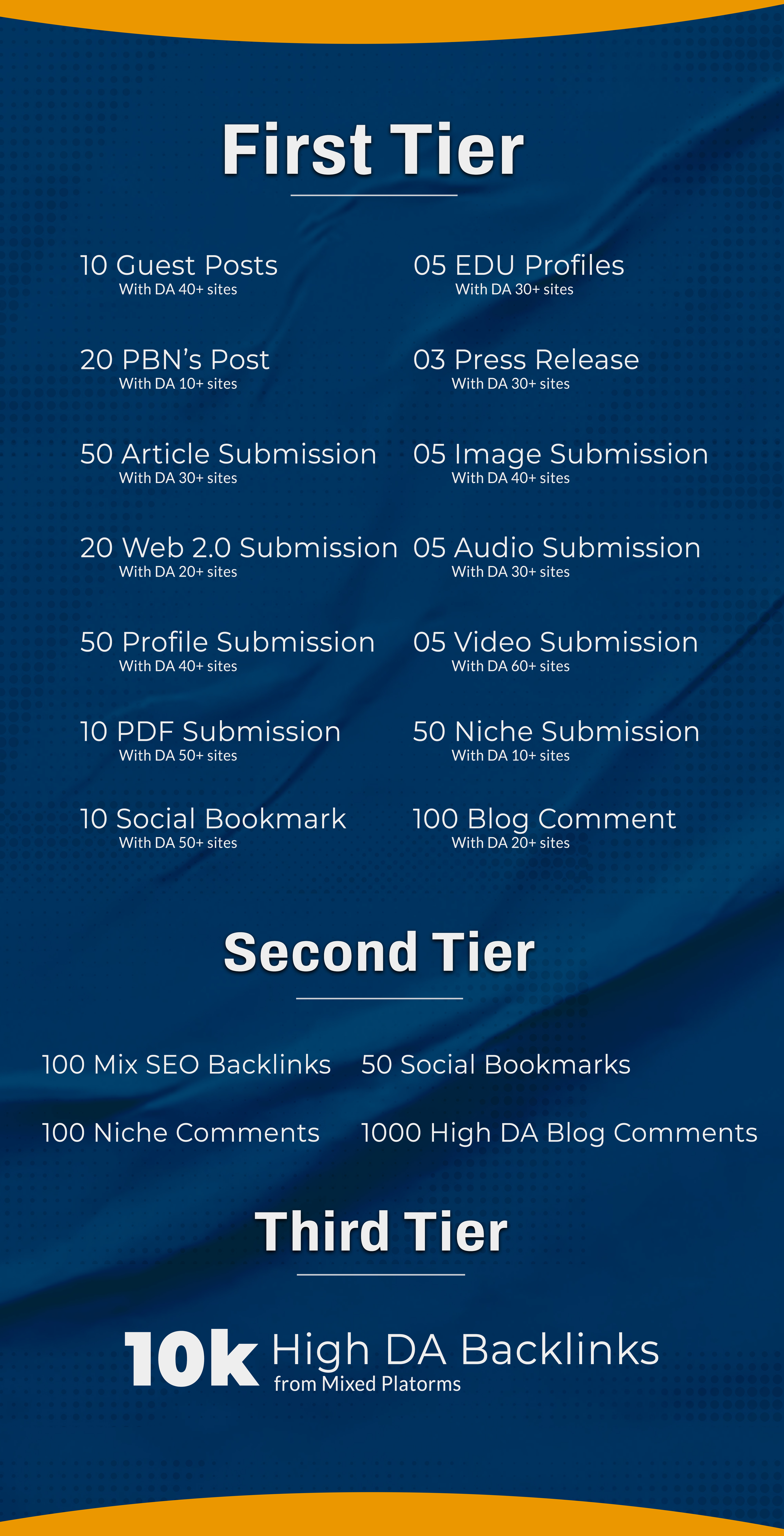 - Tier 1: High-quality backlinks pointing directly to your site for maximum SEO impact.