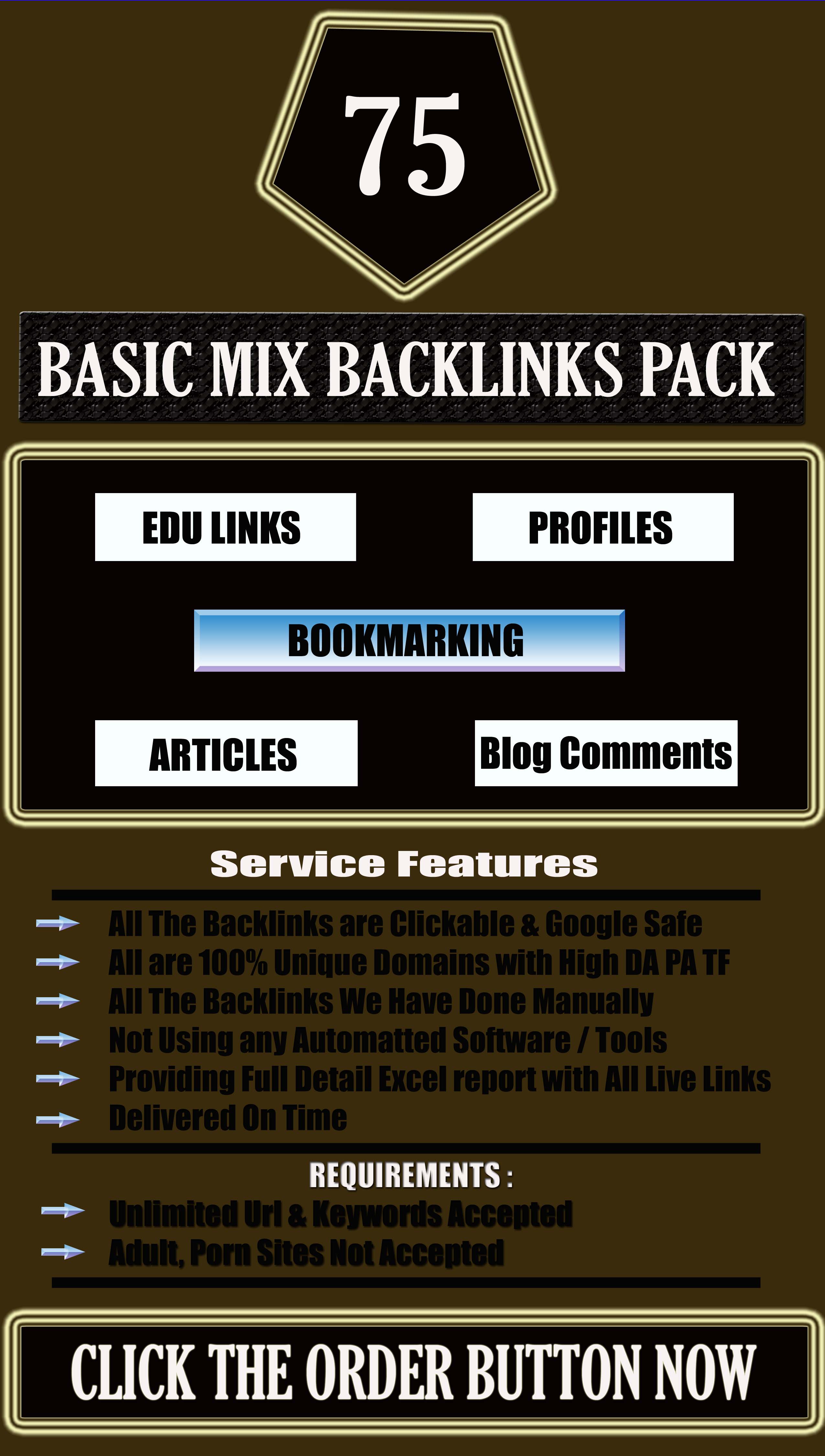 Once again i am here to provide some thing special for all needy buyers who want to get best backlinks service. These are very valuable backlinks for improving your website ranking and traffic. That's why you need to get this backlinks package to improve your website search visibility and making your business more popular in Digital Market through these Unique and effective Backlinks. So come fast & avail this fantastic Unique Mix Backlinks.
