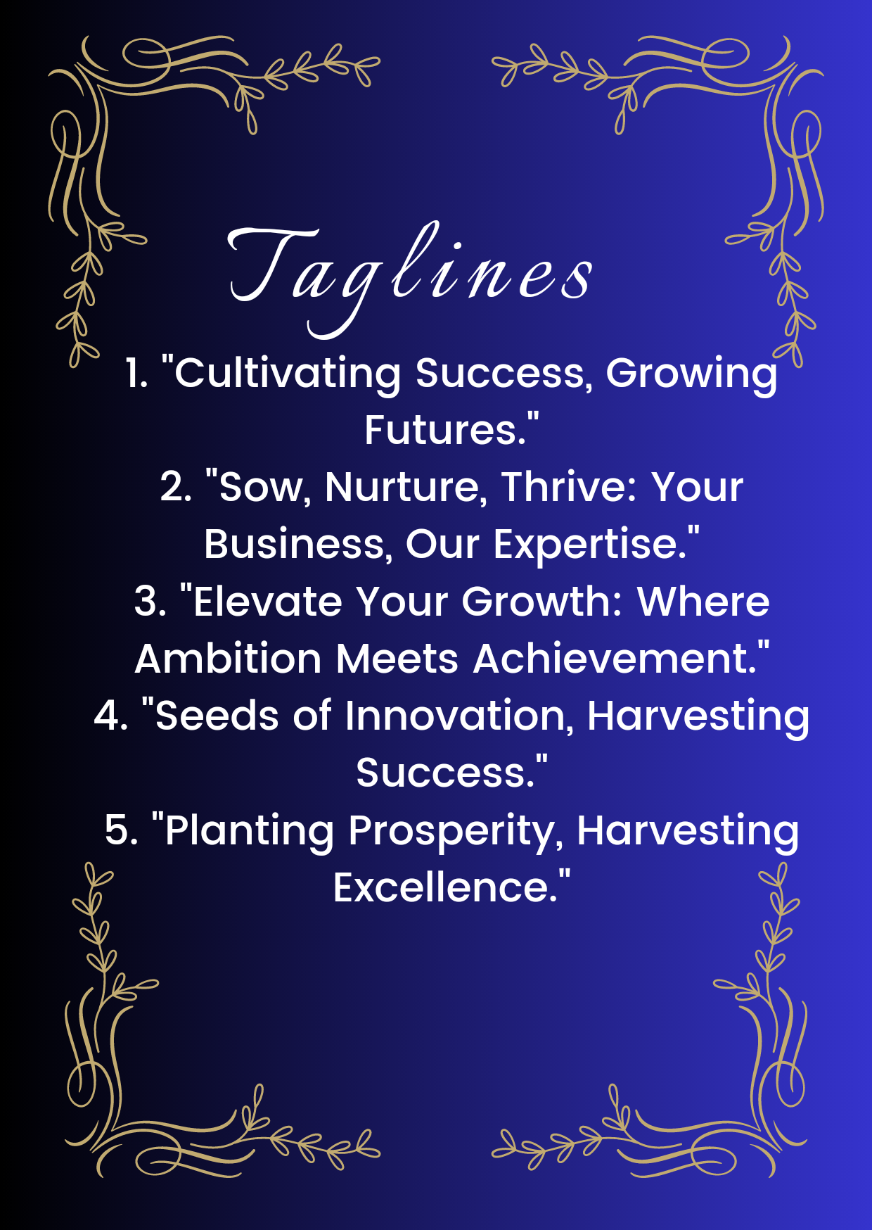 2. **Tailored Solutions:** We do not believe in one-size-fits-all solutions. Every business is unique and our bespoke slogans and mantras reflect just that and can set you apart from your competitors.