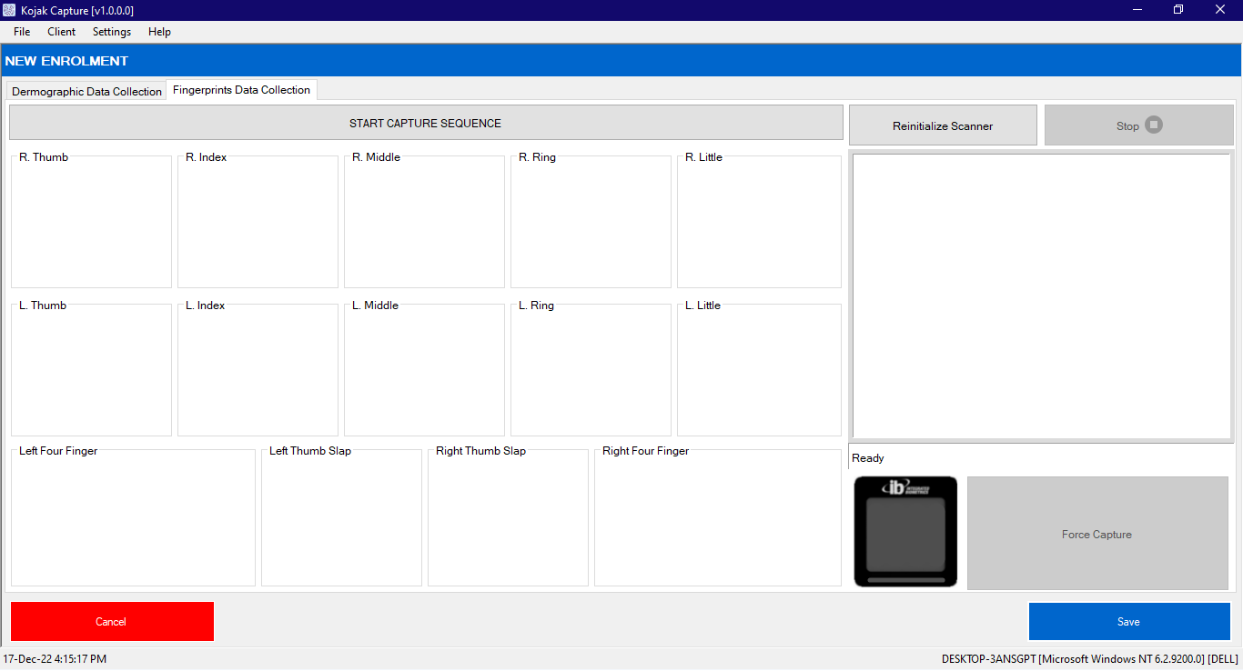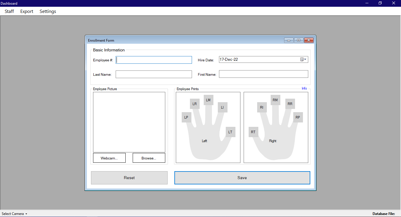 - Name of Fingerprint device you want to integrate (DigitalPersona UareU 4500 will be used if you don't have any).