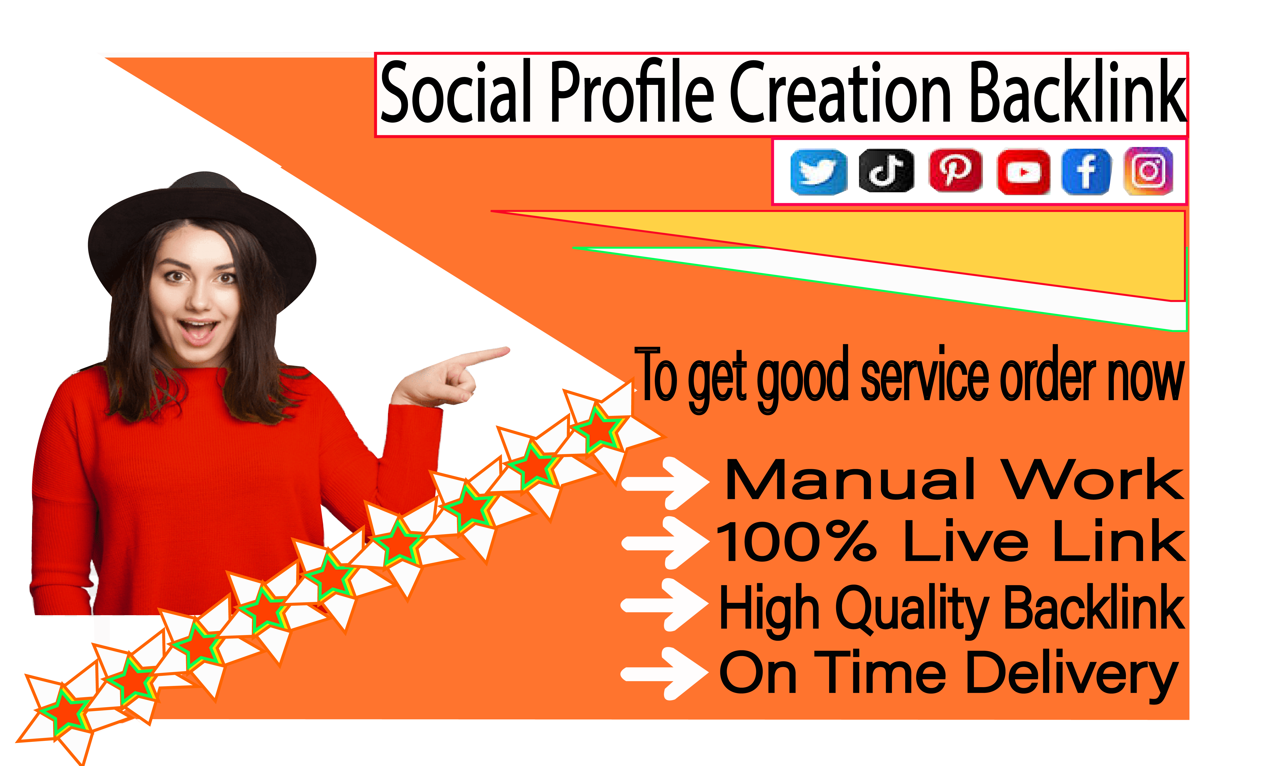 Thank you from my heart for visiting my Gig of Social media Profile Creation backlinks. If you are looking professional Digital Marketer to make Social media Profile on top ranking site then you have come right place. Media Profile is very significant issues to enhance your website and keyword ranking for Google and other search engines. I will provide Manually Social Creation with a high DA, PA Social media and creation backlinks for your site according to you. I can ensure you that will be able to get easily your targeted client and increase you sell for doing Profile backlinks for your website.