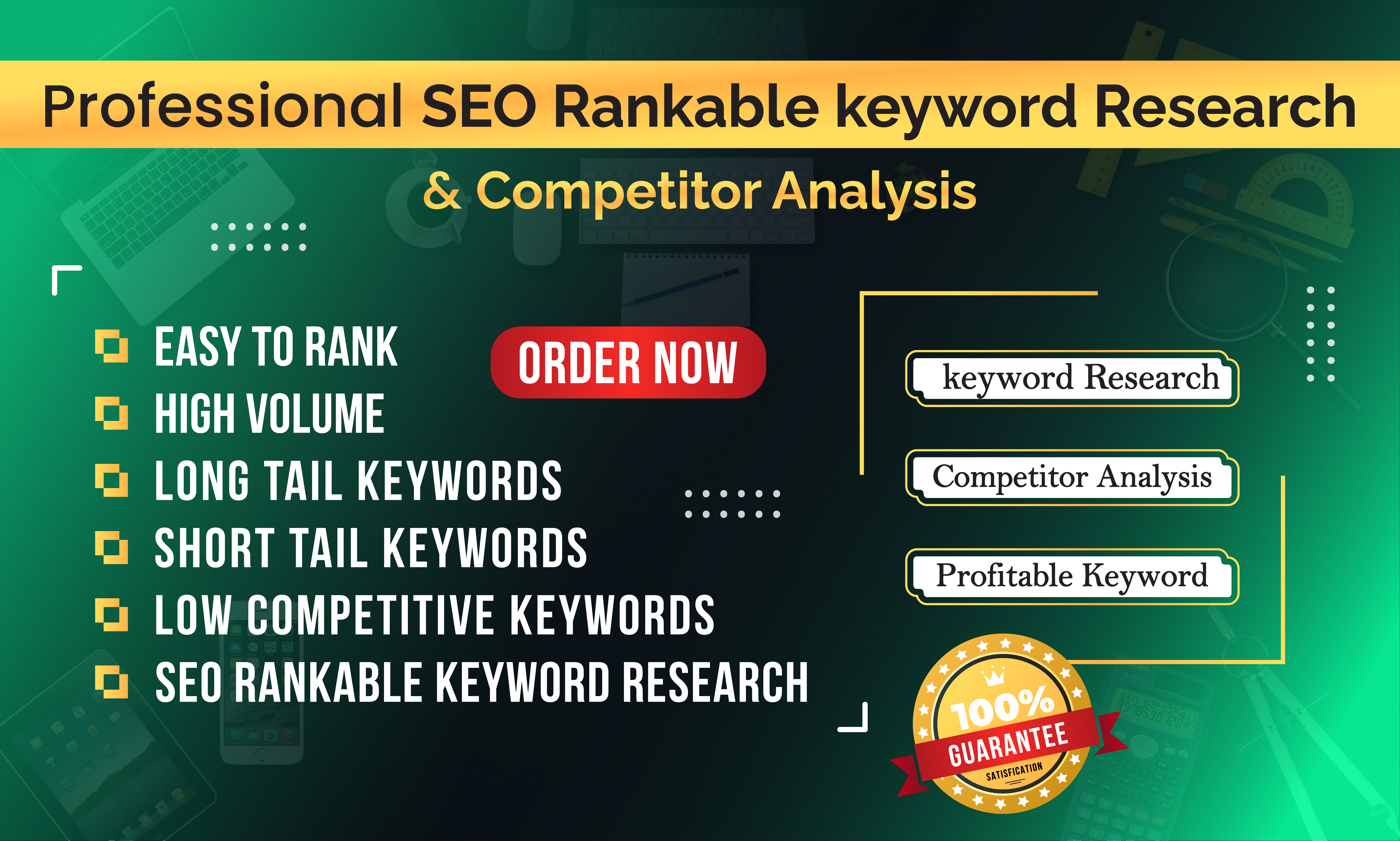 If you are looking for Professional and rankable advanced SEO keyword Research and complete Competitor Analysis. You are in the right place.