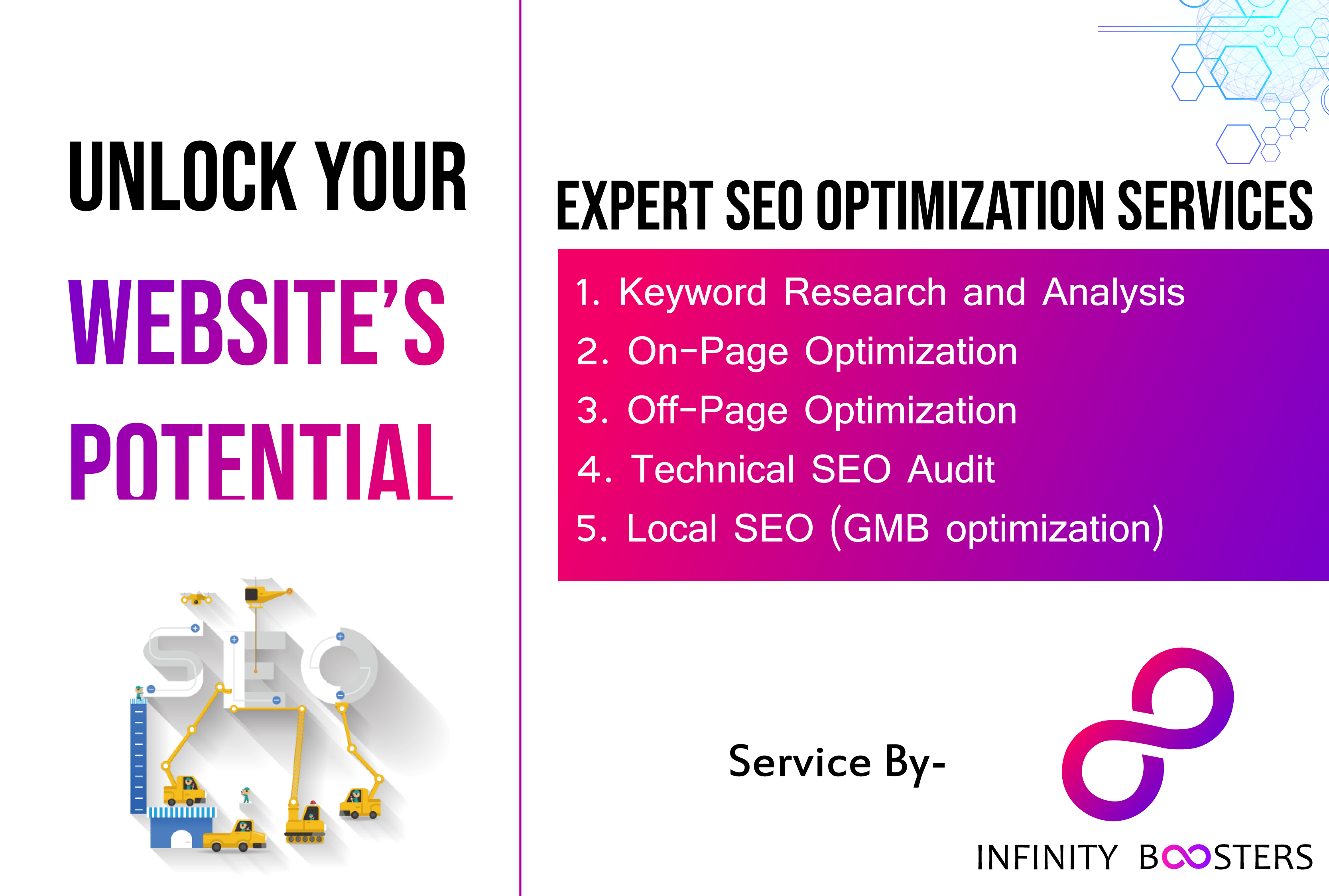 Unlock the full potential of your online presence with our cutting-edge SEO service. Elevate your website's visibility, drive targeted traffic, and dominate search engine rankings effortlessly. Our expert team utilizes the latest strategies and technologies to optimize your site, ensuring maximum exposure to your target audience. With our SEO prowess, watch your business soar to new heights and leave competitors trailing behind. Experience the power of top-notch SEO tailored to your needs, and embark on a journey to digital success today.
