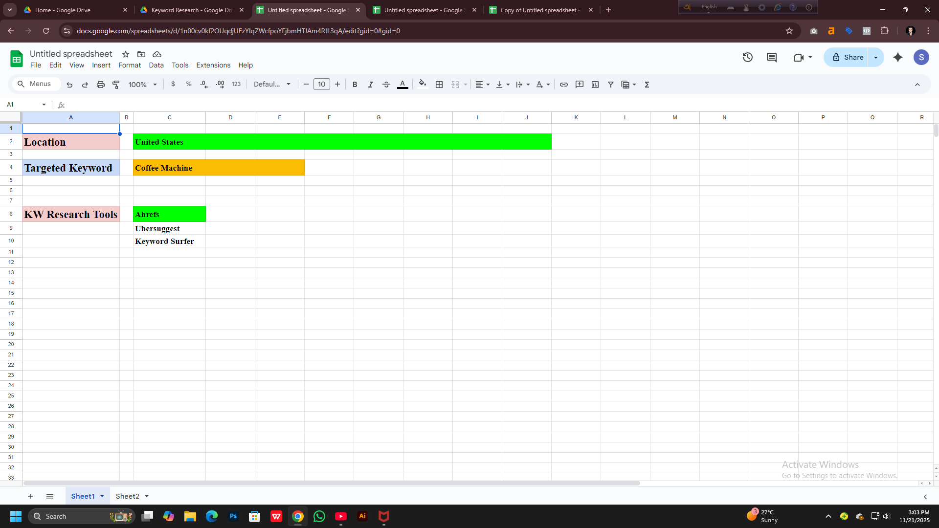 Ahrefs, SEMrush, and Google Keyword Planner. Additionally, my KGR (Keyword Golden Ratio) research will help you achieve faster rankings with less effort.