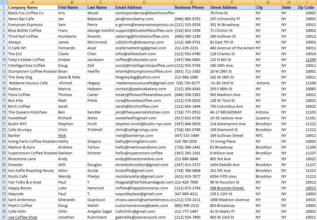 I have recently collected around 13000 unique Restaurants / Coffershop Contact Database. Collected Manually from Google Map, Yelp & Yellow