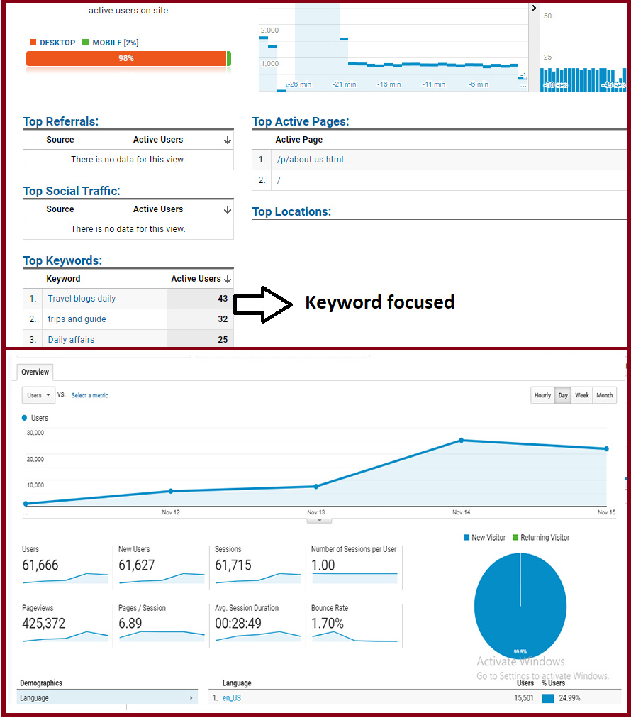 We are giving amazing customized offer to blast your website traffic from India and its cities. We can concentrate on you country and keywords Like English, Hindi, Urudu, Malayalam etc . Please read and check the work sample image before ordering. Also check our packages any doubt inbox.