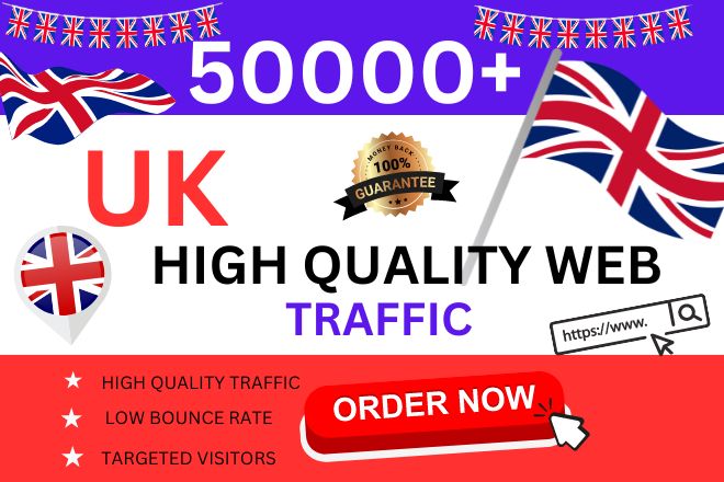 1- 100% UK-based organic web traffic2 - SEO-optimized strategies tailored to your niche3 - Increased website visibility and higher search engine rankings4 - Traffic from real users, no bots or fake visits5 - Detailed traffic reports and insights for performance tracking6 - Fast delivery and continuous support