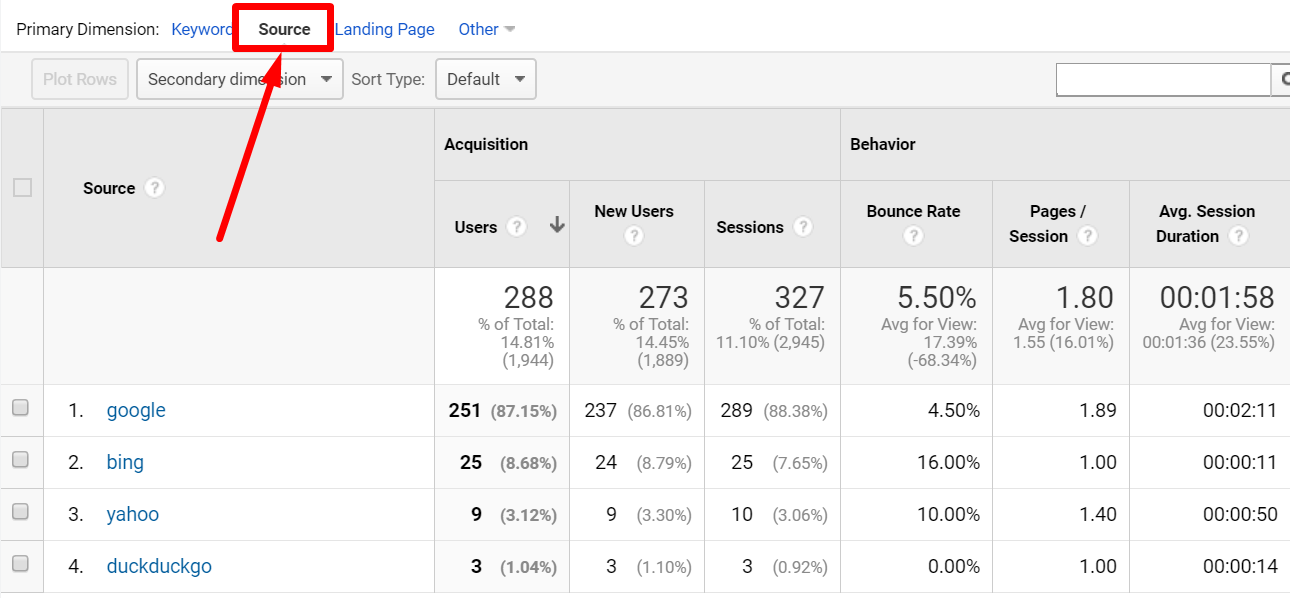 Q:What is source of visits? Answer: Source of traffic is from search engine google.com