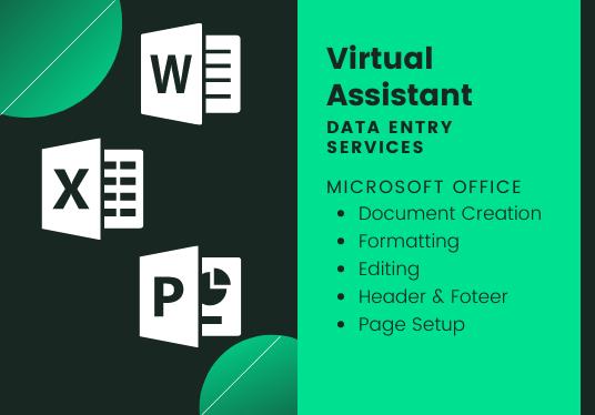virtual assistant dataentry Msoffice Msexcel typing formatting editing onlinedataentry pdfconversion